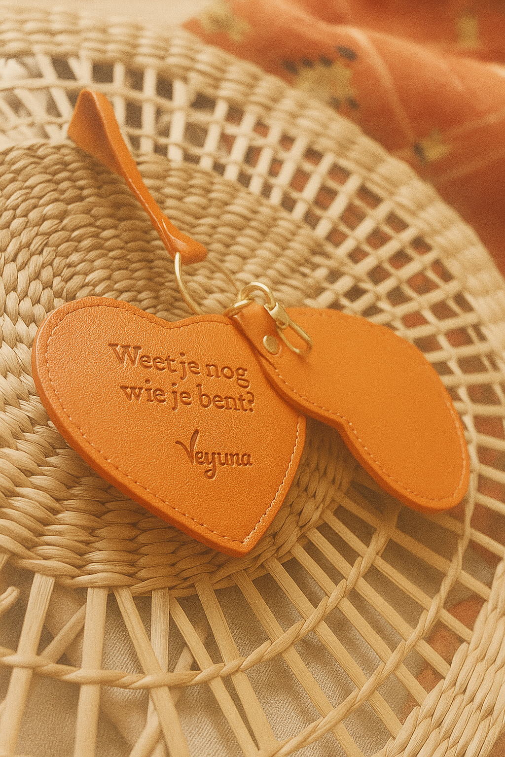Deze hartvormige sleutelhanger met spiegel is een klein dagelijks anker: om even stil te staan, adem te halen en je te herinneren aan wie je werkelijk bent.